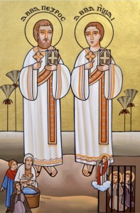 ولما رأي معلمهما كثرة محبتهما لله وحرارتهما في العبادة والسجود والسهر والصوم كل يوم إلي العشية، أوقفهما أمام المذبح المقدس رغم صغر سنهما ورسمهما الأسقف شماسين علي الكنيسة ويحكي الأنبا ميسياس أسقف فاو وكاتب سيرتهما أنه للوقت لما إبتدأ الأسقف سيامتهما وتكريسهما والصلاة عليهما، فاضت عليهما موهبة الروح القدس، وإمتلأ الإثنان من نعمة الله شهادة من السماء علي أنهما يستحقان هذه الرتبة المقدسة. وبعدها زادا نموا في كل معرفة روحية وكنيسية، وقد قيل عن بشاي وبطرس أنهما كانا يقضيان يومهما في الصلاة من الصباح الباكر حتي المساء. كما كانا يصومان انقطاعا ولا يتناولا طعامهما إلا في العشية.
